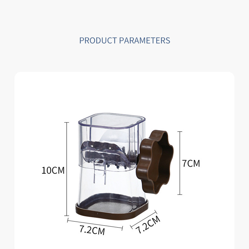 This manual grinder is a practical tool for grinding dried fruits in the kitchen. It uses a food grade stainless steel blade with a non slip and stable base. The body is small and lightweight, with no power restrictions, making it easy to use for both home and travel. It can easily handle various types of dried fruits such as walnuts, almonds, peanuts, as well as grind spices such as Sichuan peppercorns and cumin. Hand cranking is effortless and smooth, and the grinding thickness can be freely adjusted to meet different needs such as coarse grains and fine powders. It is suitable for various scenarios such as baking, seasoning, and complementary food production.
