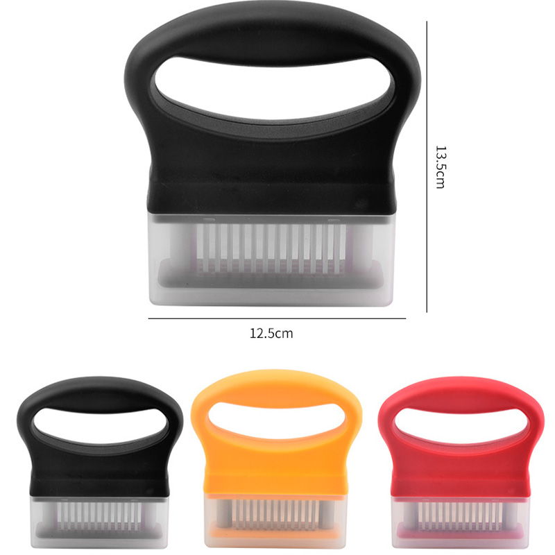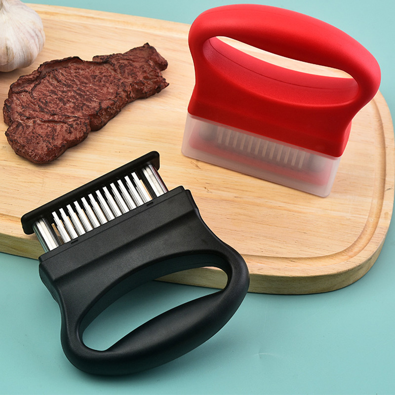 The stainless steel lean meat tenderizer adopts a food grade stainless steel needle design, which can quickly cut off meat fibers, making lean meat tender and juicy, no longer dry wood. When used, it is labor-saving and efficient, which can accelerate the penetration of marinade and make the taste more uniform. The material is safe and easy to clean, making it a great helper for improving the taste of home cooking.